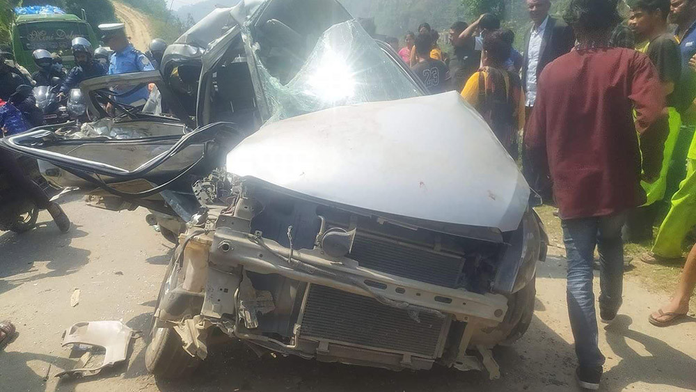 दुर्घटनामा कारका चालक तनहुँको खैरेनीका अन्दाजी ३६ वर्षीय दिलबहादुर बस्नेत, भारतको उत्तरप्रदेशका ४० वर्षीय बिमलचन्द्र अग्रवाल, ३५ वर्षीय साधना अग्रवाल, ४० वर्षीया सन्ध्या अग्रवाल, ५५ वर्षीय राकेश अग्रवालको मृत्यु भएको छ । घाइते भएका उनीहरुको उपचारका क्रममा चालक डिलबहादुर र बिमलचन्द्रको टिचिङ अस्पताल र अन्यको ट्रमा सेन्टरमा मृत्यु भएको हो । बसमा सवार धादिङ नीलकण्ठ नगरपालिका ११ का २४ वर्षीय राम परियार घाइते भएका छन् । घाइतेको ट्रमा सेन्टर काठमाडौंमा उपचार भइरहेको छ ।